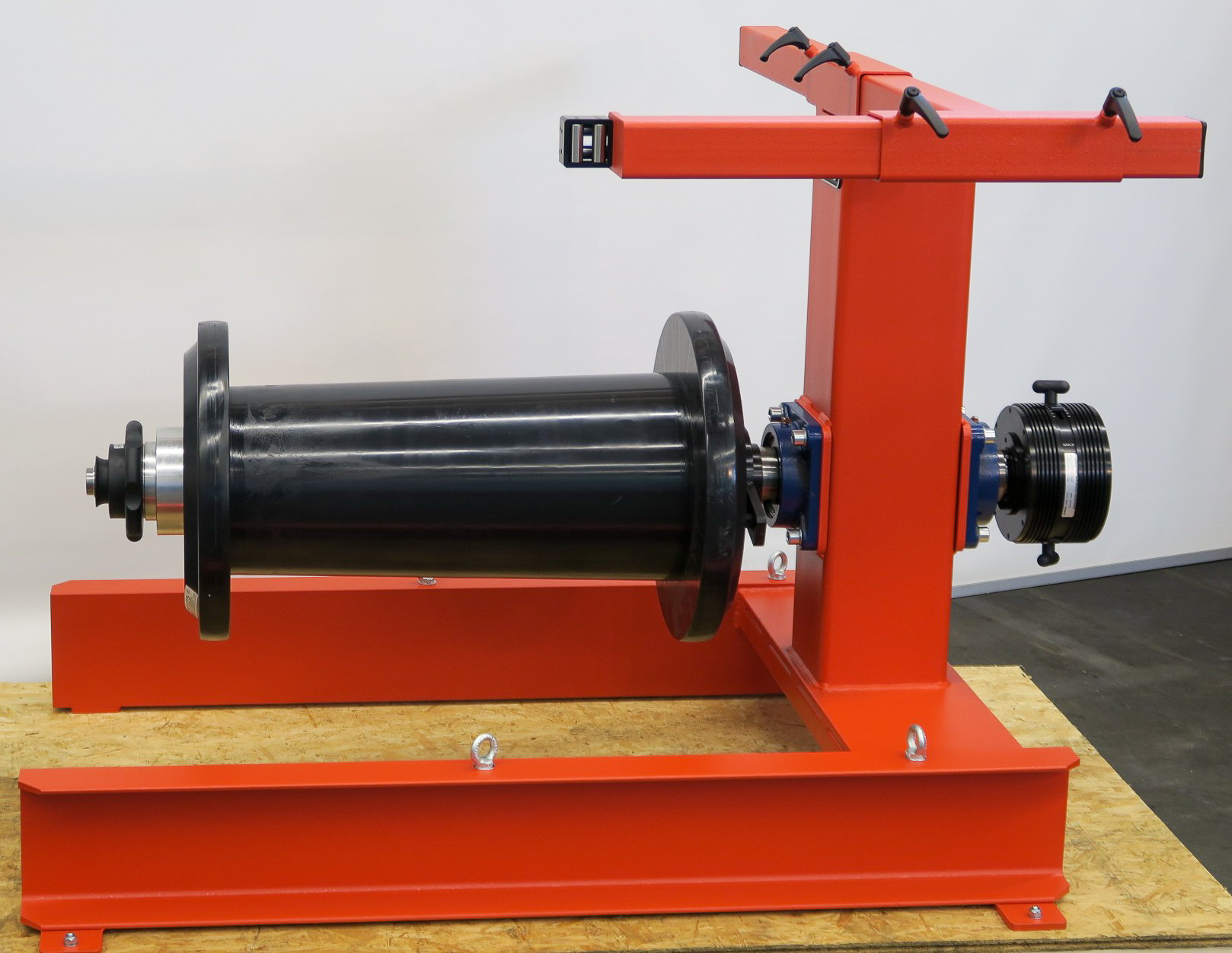 Abwickler in gebremster oder angetriebener Bauart, die für das präzise und kontrollierte Abwickeln von Drähten, Kabeln und Seilen entwickelt wurden. Sie ermöglichen eine tangentiale Abführung des Materials von der Spule, was besonders bei empfindlichen oder hochpräzisen Anwendungen von Vorteil ist.